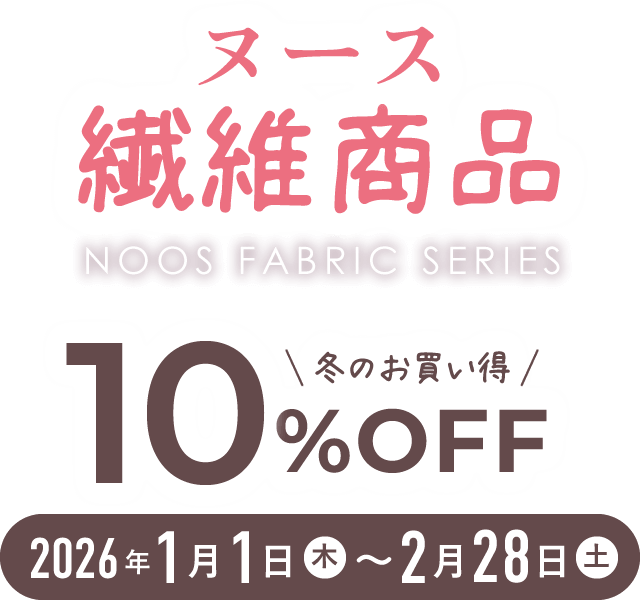 ヌース繊維シリーズの腹巻・寝具・タオルなど、人気アイテムをお得に揃えられる期間限定キャンペーン。使った瞬間から感じる心地よい温かさが、体をやさしく包み込みます。これまで気になっていた商品を試すにも、お気に入りを買い足すにも絶好のチャンスです!キャンペーン期間:2026年1月1日(木)~2月28日(土)